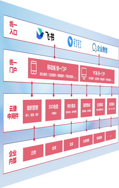 对协作平台提供支持服务,,支持企业应用与协作平台对接,,,包含组织同步、、、消息集成、、、、待办集成等。。。支持目前主流的协作平台:钉钉、、企微和飞书。。。。